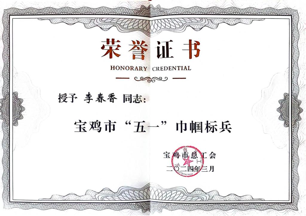 扎根一線 風(fēng)華無限||寶光股份李春香喜獲寶雞市“五一巾幗標(biāo)兵”榮譽稱號