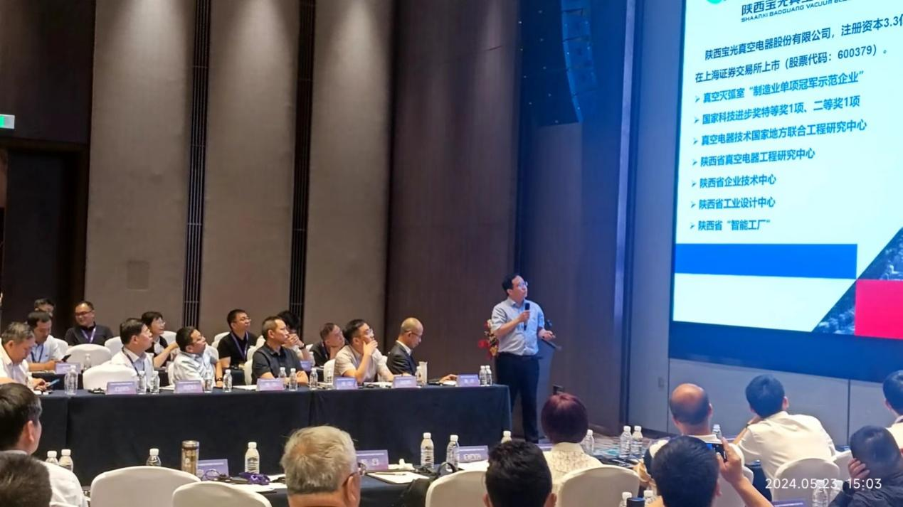 寶光股份做為蟬聯(lián)中國制造業(yè)單項冠軍企業(yè)、真空器件行業(yè)的旗艦,黨委副書記、總經(jīng)理劉壯一行應(yīng)邀參加論壇,副總工程師、技術(shù)中心主任李鵬代表寶光股份做了“高電壓真空滅弧室的研發(fā)與應(yīng)用”的主旨報告,向與會行業(yè)專家、相關(guān)企業(yè)展示了公司近年在高電壓真空滅弧室研發(fā)上新的研究成果,進一步堅定 “真空+環(huán)保氣體絕緣”解決方案在高電壓等級場合應(yīng)用的信心,得到與會專家、學者及相關(guān)企業(yè)負責人的一致肯定。