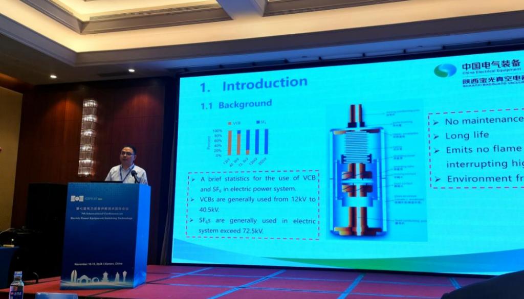 2024年11月11日至13日,第七屆電力裝備開斷技術(shù)國際會議(ICEPE-ST 2024)在廈門召開,公司黨委副書記、總經(jīng)理劉壯帶領(lǐng)技術(shù)和市場團隊參加會議,并進行技術(shù)交流和產(chǎn)品宣講,向?qū)W術(shù)界同仁展現(xiàn)了公司技術(shù)研究和產(chǎn)品開發(fā)方面的最新成果。