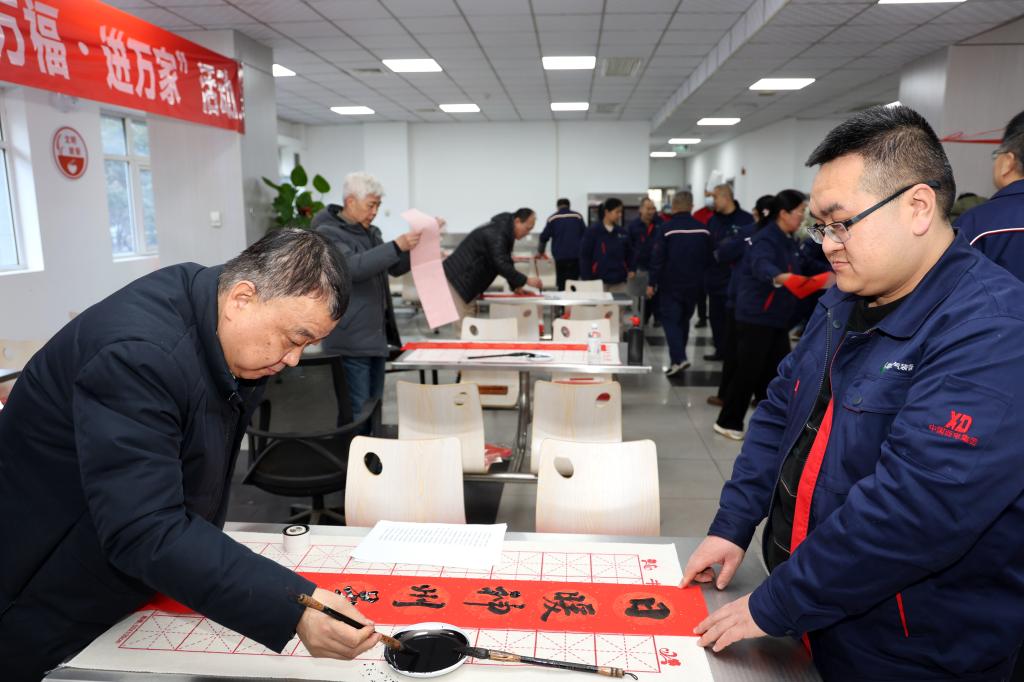 在送春聯(lián)現(xiàn)場,書法家們揮毫潑墨、筆走龍蛇,聞訊而來的職工紛紛圍在書桌旁期待成品。一停一頓、一起一落,一句句散發(fā)著清新墨香的吉祥語句躍然紙上,“一元二氣三陽泰,四時五福六合春”“春滿乾坤千里秀,時逢盛世萬家興”,一副副滿載美好祝福的春聯(lián)和“?!弊周S然紙上,既有辭舊迎新的熱切祈盼,也有對幸福生活的美好祝福。職工們拿到寫滿祝福和美好祝愿的春聯(lián),喜悅之情溢于言表?;顒悠陂g共送出春聯(lián)近400余幅,福字300余幅。