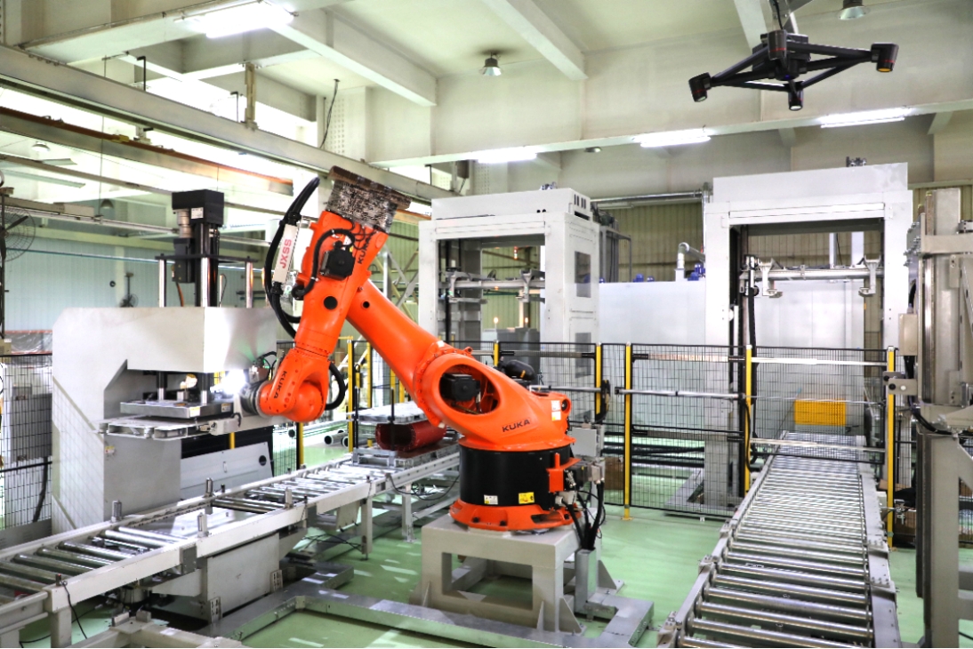 寶光股份充分應(yīng)用5S管理和定置管理等精益理念,通過對稱雙回字形布局實現(xiàn)生產(chǎn)現(xiàn)場面積最大化利用,7臺高檔數(shù)控設(shè)備和2臺工業(yè)機器人全部實現(xiàn)在線運行監(jiān)測和故障診斷,設(shè)備狀態(tài)信息實時顯示和處理,有效保證人機協(xié)同作業(yè)的安全。產(chǎn)線的投入使用在降本的同時顯著提高零件生產(chǎn)質(zhì)量、效率和智能制造水平,目前,已累計加工導(dǎo)電桿零件8萬余件,提高生產(chǎn)效率30%以上,零件生產(chǎn)周期縮短50%以上。