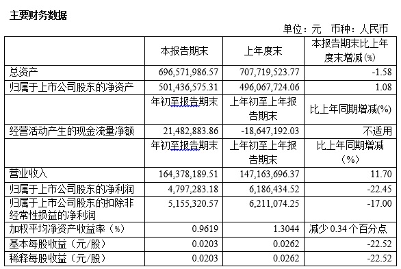 寶光股份2018年1季度主要財(cái)務(wù)指標(biāo)