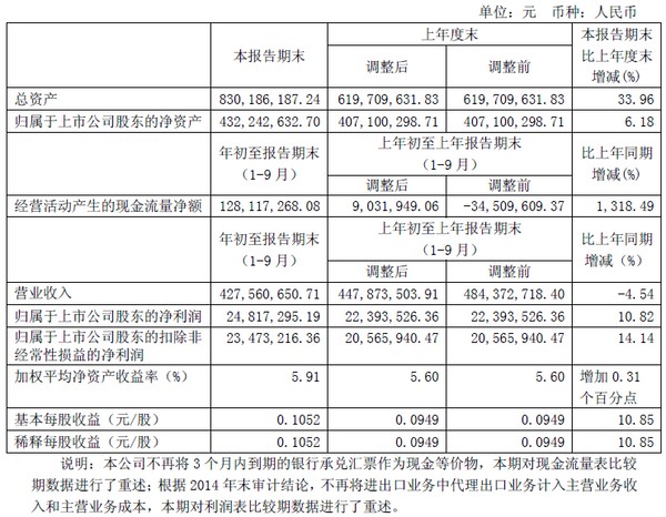 寶光股份2015年3季度主要財(cái)務(wù)指標(biāo)