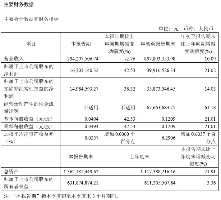 寶光股份2022年三季度主要會(huì)計(jì)數(shù)據(jù)和財(cái)務(wù)指標(biāo)