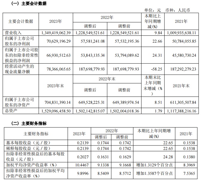 寶光股份2023年度主要財務(wù)指標