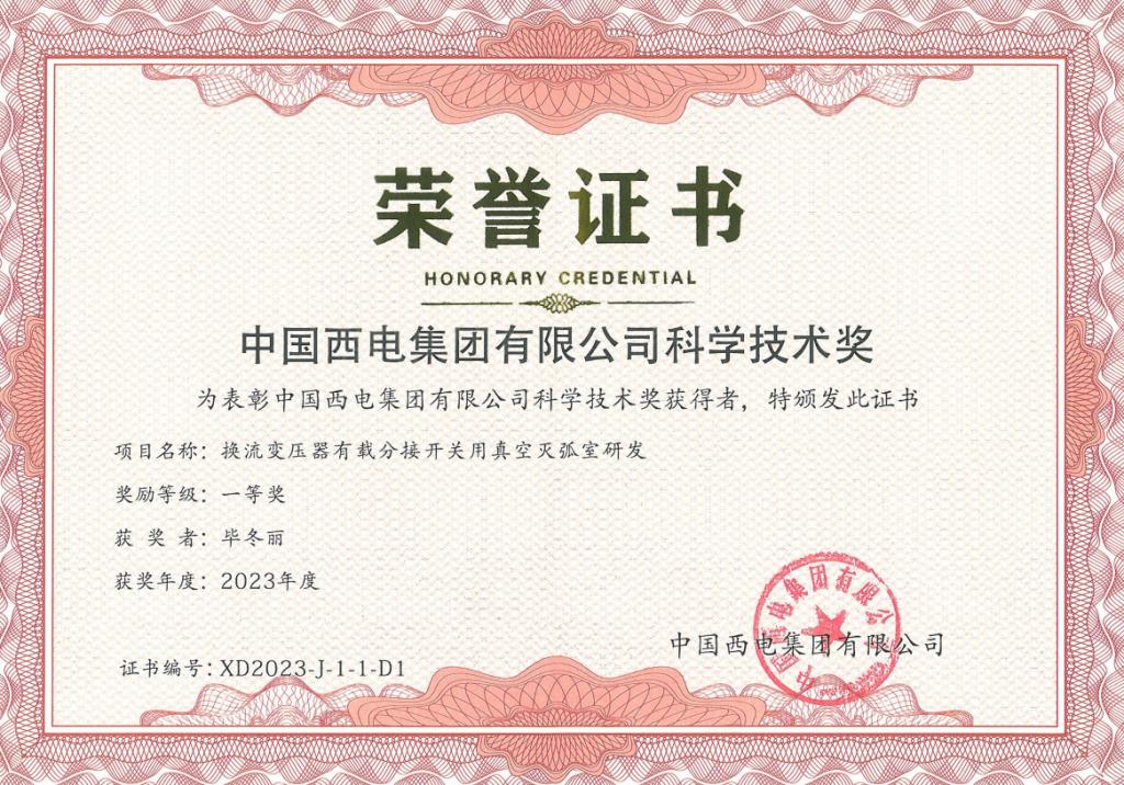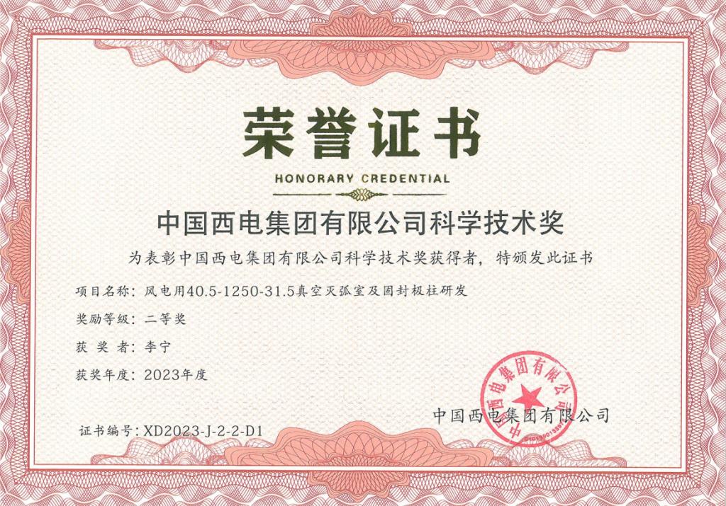 近日,寶光股份《換流變壓器有載分接開關(guān)用真空滅弧室研發(fā)》與《風(fēng)電用40.5 kV/1250 A-31.5 kA真空滅弧室及固封極柱研發(fā)》兩個技術(shù)創(chuàng)新項目,分別榮獲2023年度中國西電集團(tuán)科學(xué)技術(shù)獎“一等獎”與“二等獎”!